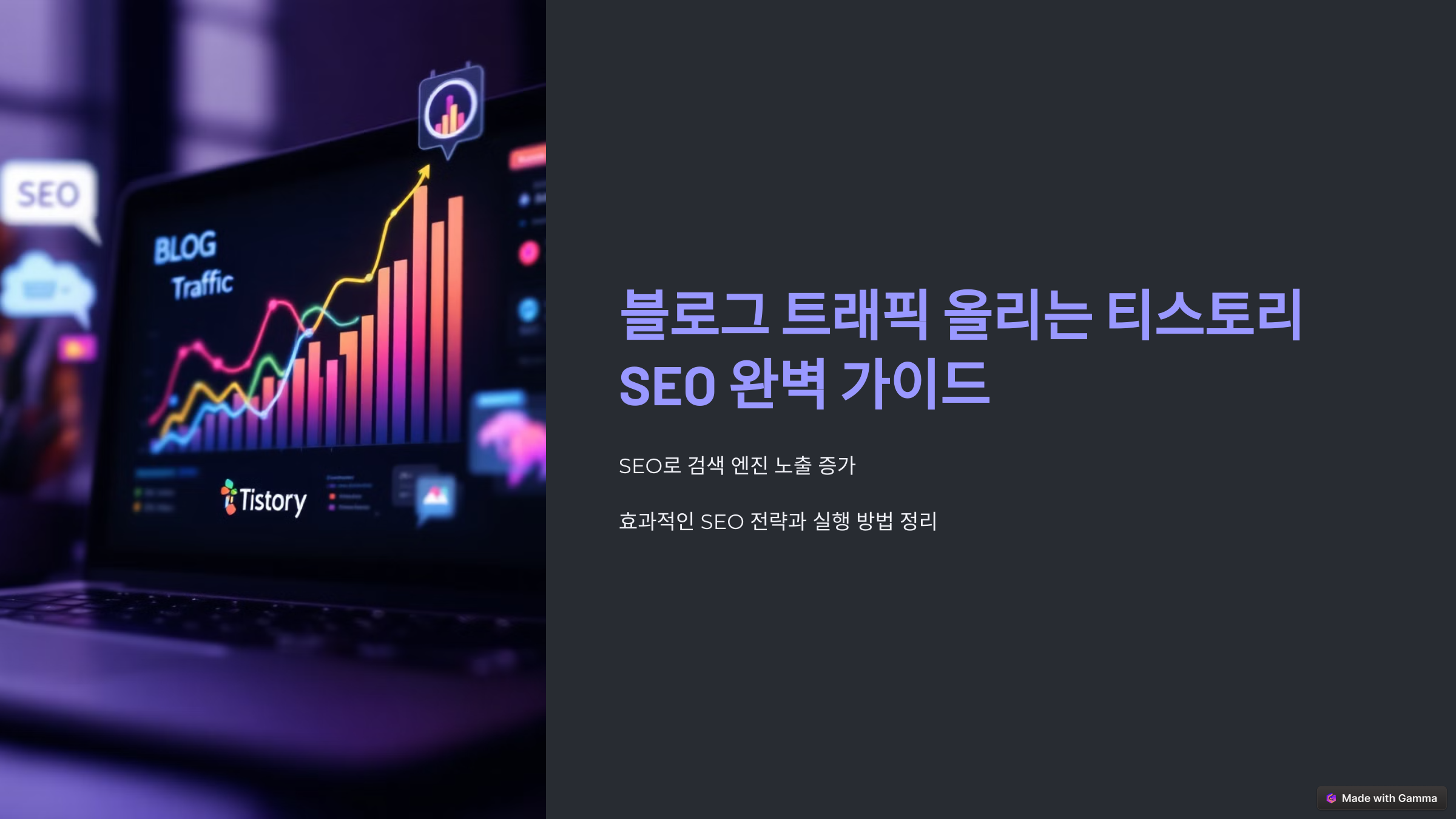 티스토리 블로그를 운영하면서 트래픽을 늘리는 것은 모든 블로거의 목표일 것입니다. SEO(검색 엔진 최적화)는 검색 엔진에서 더 많은 사람들에게 블로그를 노출시키는 가장 효과적인 방법입니다. 이번 글에서는 티스토리 블로그의 트래픽을 효과적으로 높일 수 있는 SEO 전략과 실행 방법을 완벽하게 정리했습니다. 🌟